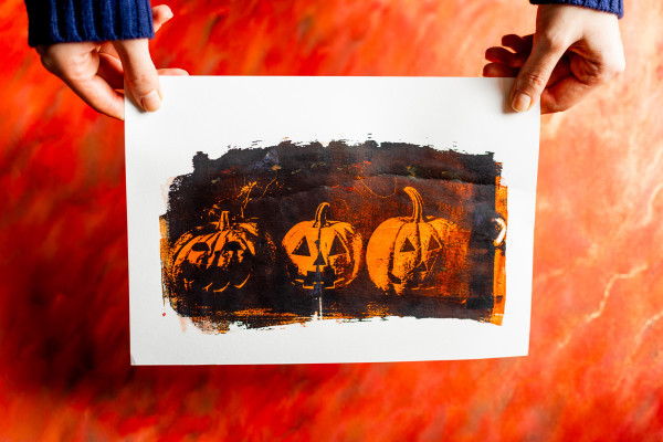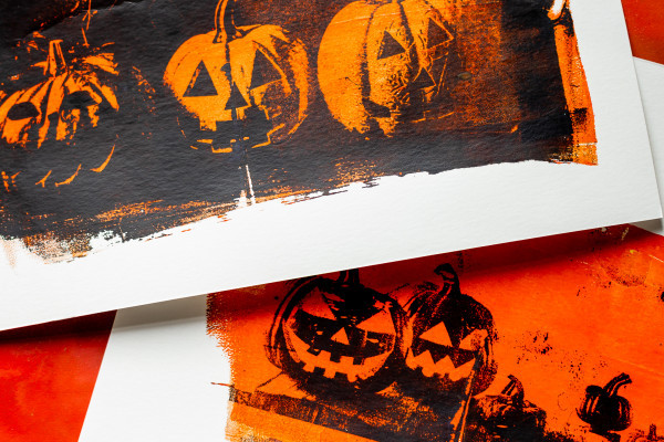 Gel printing is a technique for transferring images using a silicone plate, ideal for creating spooky and colourful motifs: pumpkins, ghosts, bats and many other creatures of the night.